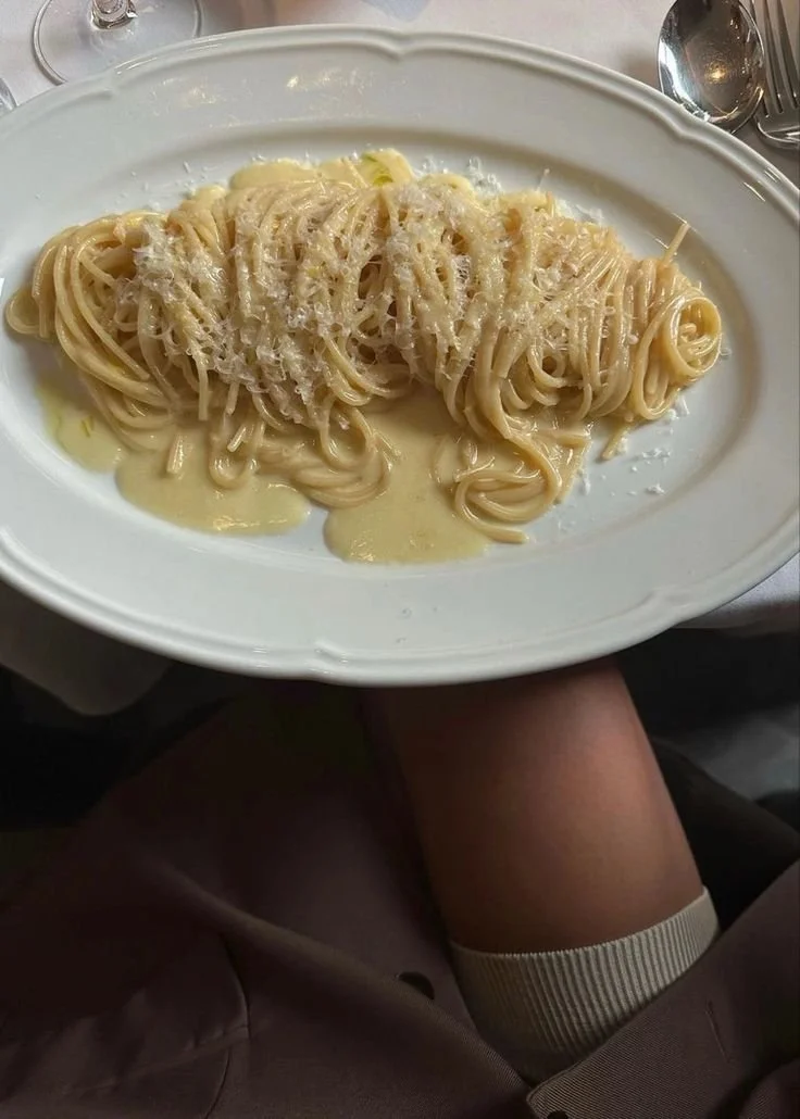Return to the saucepan with the butter and lemon. Add the reserved pasta water, 1½ cups grated Parmesan, two generous pinches of sea salt, and plenty of freshly cracked black pepper. Bring to a gentle simmer, stirring to combine.