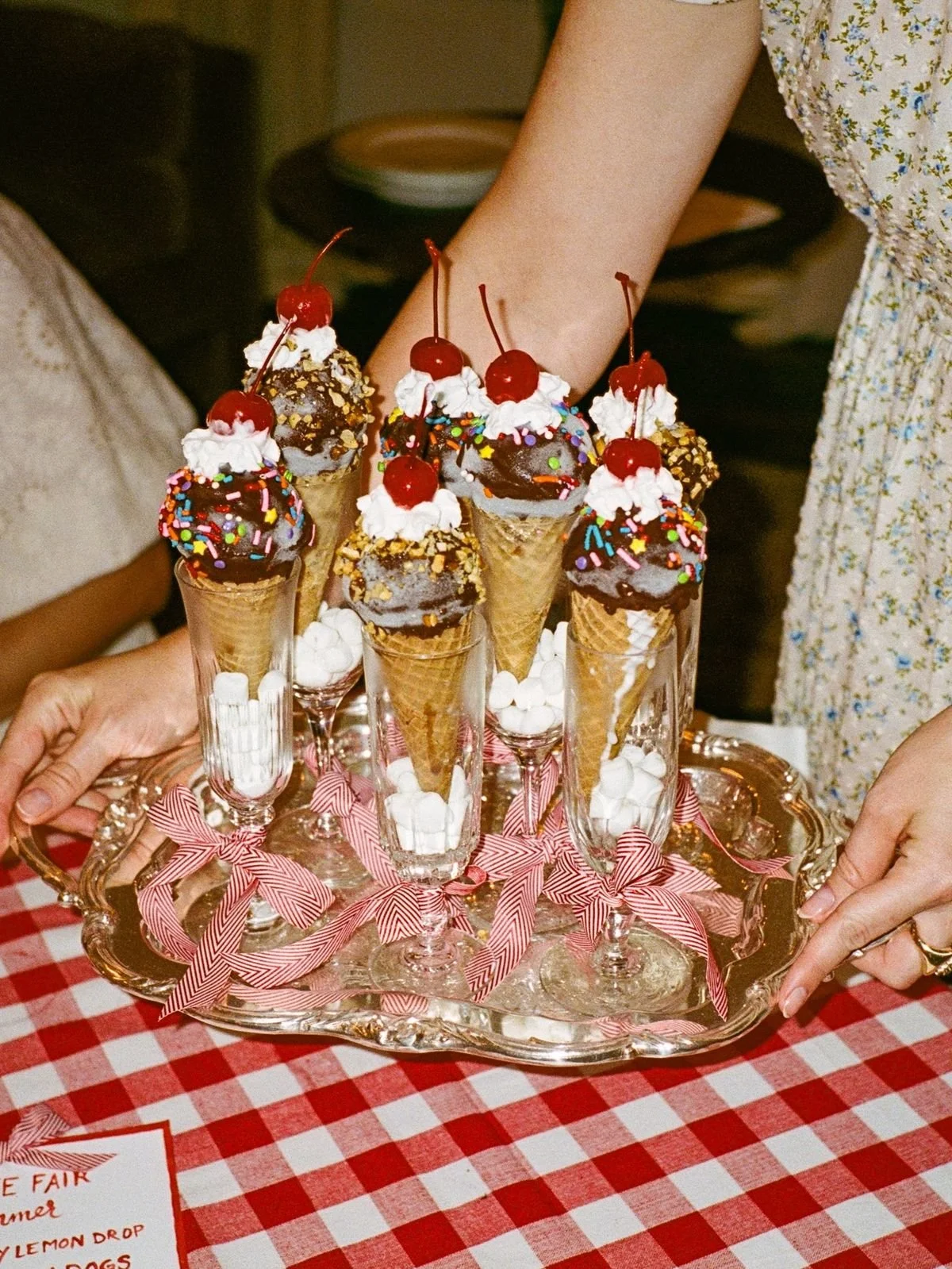 Maybe this is just nostalgia speaking, but I love the idea of my Galentine’s having an ice cream party for dessert. And this is very in step with our decadent theme. It’s also simple, which we love.
