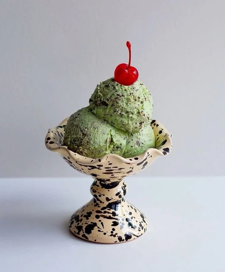 Mix and match bowls and spoons. At this point in the evening people will be tipsy, comfortable and happy. When I serve ice cream I sometimes use pretty glassware instead of bowls. I think these are so beautiful.