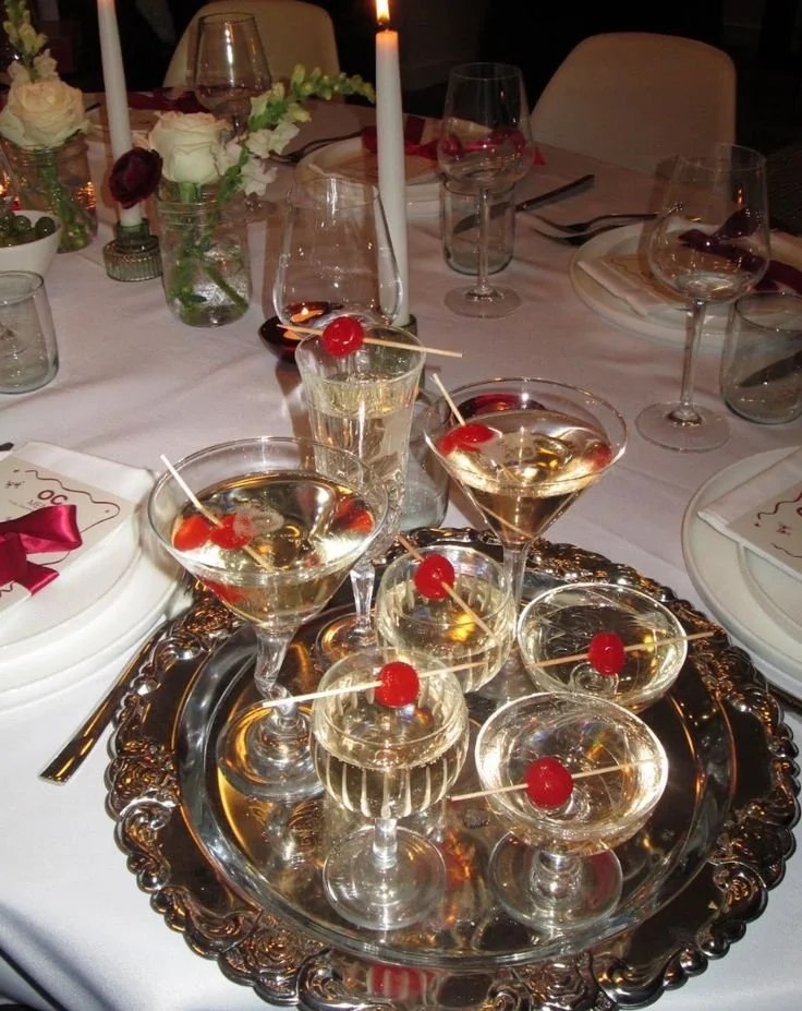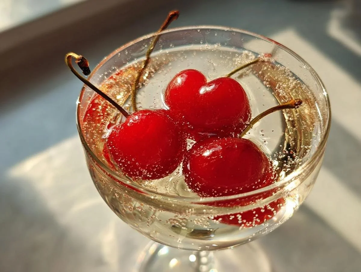 A Very Excellent Champagne Cocktail with Maraschino Cherries
