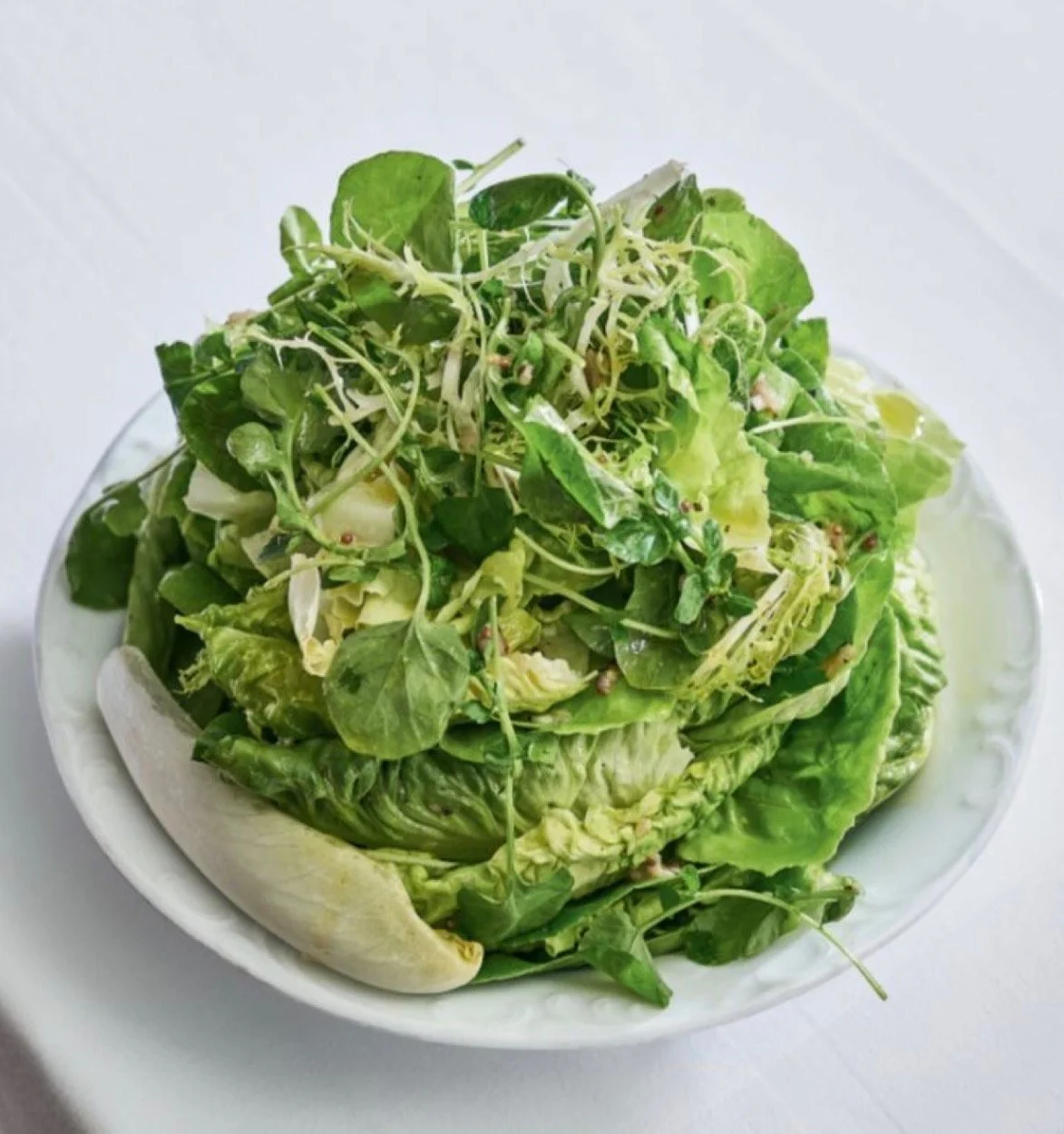 In keeping with my mantra of excellent, beautiful and simple dishes, I propose skillet roasted, skin on, bone in chicken thighs, with sides of buttery polenta and vibrant, herby green salad with a bitter Dijon vinaigrette.
