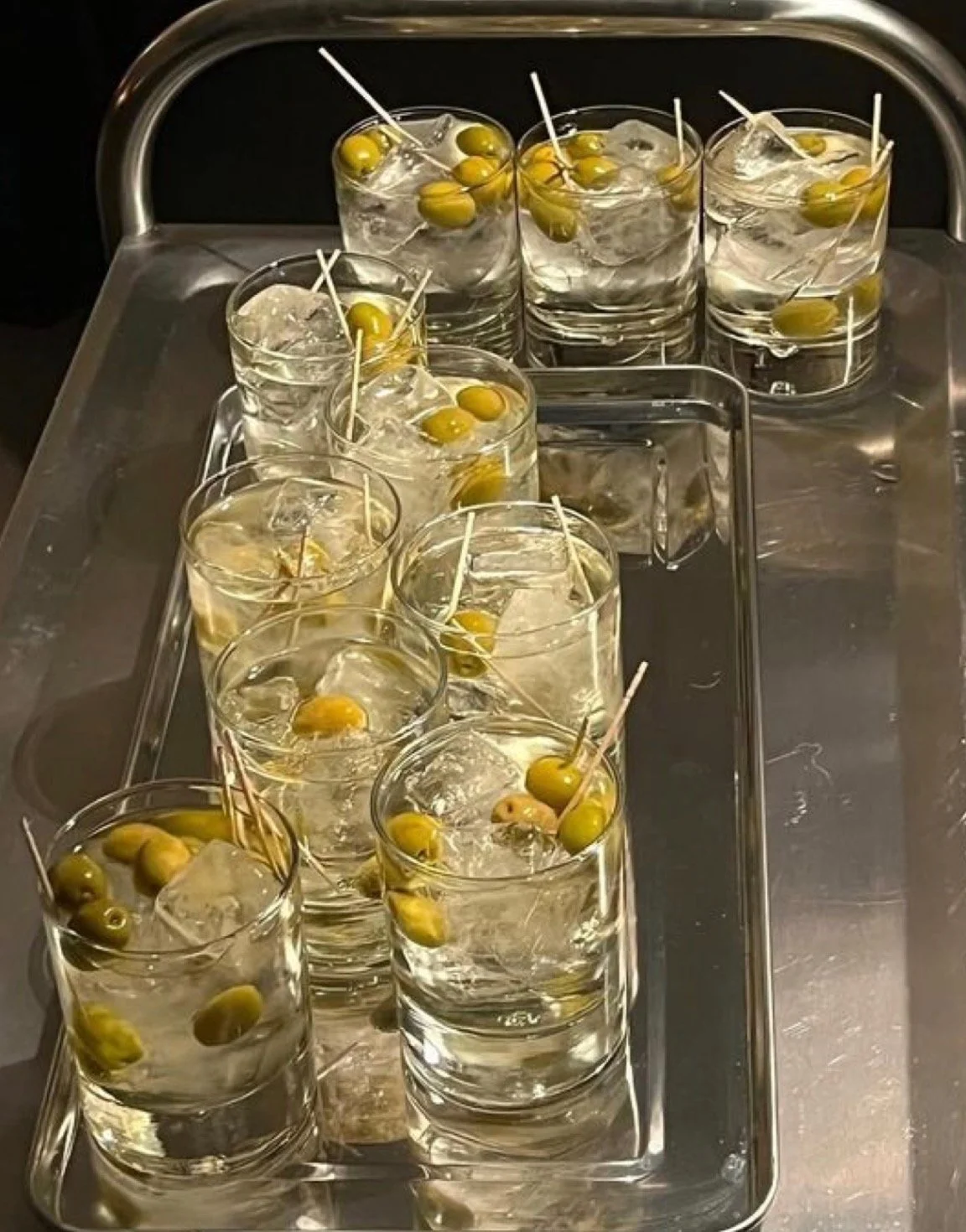 Olives for garnish (string 3 on a toothpick)